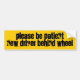 Diseñé a esta pegatina para el parachoques después de encontrar conductores groseros e impacientes numerosos mientras que mi hijo practicaba sus habilidades de conducción con su licencia del nivel 1 con sus padres en el vehículo. Me prepongo poner a mi pegatina para el parachoques en un imán así que puedo moverlo desde auto al auto (también tengo 2 más niños que estén aprendiendo conducir muy pronto - así que me prepararán!)