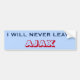 Las características del este diseño desafiantes de la pegatina para el parachoques el refrán "NUNCA DEJARÉ A AJAX". Refiere a Ajax, Ontario, Canadá.