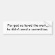 Pegatina para el parachoques con la declaración "para dios así que amado el mundo él no envió a un comité."