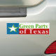 Esta pegatina para el parachoques comienza con un diseño de la bandera del estado de Tejas, después añade las indirectas de los colores del Partido Verde de amarillo y de verde a la ayuda del estado de origen de la demostración para el Partido Verde de Tejas.