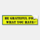 Esta pegatina para el parachoques recuerda a gente ser agradecida para lo que él tiene.