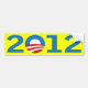 Muestre su ayuda intrépida y colorida para la reelección de presidente Barack Obama en 2012 con esta pegatina para el parachoques amarilla y azul 2012 de Obama.
