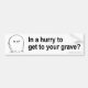 Pienso que el 99% de la población canadiense sabe que el apresurar y el chupar rueda son actividades peligrosas. Esta conciencia no afecta al comportamiento de muchos conductores. Allí son, poniendo no sólo sus vidas en peligro pero las vidas de ésos alrededor de ellos también. Demos reductores de velocidad y tailgaters una cierta perspectiva. ¿Pegatina para el parachoques del humor/de la confrontación con la realidad - en una prisa a conseguir a su sepulcro?