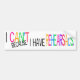 ¿Cuántas veces usted tuvo que decir alguien a que usted no puede encontrarse para una reunión social porque usted tiene ensayos? Vida en los medios del teatro usted pasa horas incontables en ensayos. Dejado cada uno sepa con esta pegatina para el parachoques. Gifts4Dancers.com
