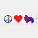 Separe la idea de la paz y ame, así como su aprecio para la raza del perro pastor de Shetland con nuestra paz, amor, y pegatina para el parachoques de Sheltie. El símbolo de paz es un arco iris hermoso, el corazón es rojo, y la silueta de la raza del perro es descoloramiento rojo al azul. ¡Una declaración potente - sobre un producto elegante!