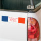 Ahora tengo 2 pegatinas que no puedo utilizar en mi coche. Bueno, una de ellas toda arrugada de intentar pegarla en la carrocería. Buena impresión. Es igual a las fotos.