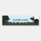 pegatinas del bumber de la diversión para los amantes de naturaleza por todas partes con un panorama del paisaje de árboles y de arbustos verdes contra un fondo azul claro del cielo y el texto adaptable: amante de naturaleza. exclusivamente de artes naturales.