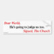 Pegatina para el parachoques: "Estimado World, él va a juzgarnos también. Firmada, la iglesia"