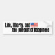Vida, libertad, y la búsqueda de la pegatina para el parachoques de la felicidad, con una bandera americana. ¡Muestre su orgullo americano con una camiseta, un botón, o un regalo patriótico! ¡Grande para el 4 de julio, o celebrar en cualquier momento los E.E.U.U.!