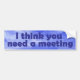 ¡" Le pienso necesidad pegatina para el parachoques sobria de la sobriedad de la recuperación de una reunión" (Bumpersticker) - éste soy cuando el cónyuge, ALGÚN OTRO le está haciendo nuts! ¡Envíe a su cónyuge, el individuo detrás de usted, sus enemigos A UNA REUNIÓN!! ¡Indirecta, indirecta! ¡La recuperación está sobre "ir a las reuniones"! Todo el ANÓNIMO - alcohólicos anónimos, anónimo de narcótico, CA, Sobre-Comedores anónimos, jugadores anónimos, etc. ¡Porqué sea anónimo?! ¡Muéstrela apagado en su coche o en alguna parte! Dé a otros el mensaje - usted ayudará quizá alguien conseguir/estancia limpia y sobria. Si usted/algún otro está ya en la recuperación, recuérdelo. ¡Haga que ríen, quizá?! Sea orgulloso de ella. Éstos son grandes para sí mismo o pues los regalos para algún otro en la recuperación para dejarlos conocerle aprecian su sobriedad.