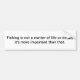 La pegatina para el parachoques con la declaración "pesca no es una cuestión de vida o muerte, es más importante que ése."