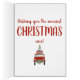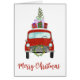 Navidades. Con un parpadeo y un ojo ya pasó otro año y son Navidades de nuevo. Un coche retro rojo con coloridos regalos envueltos hace una gran carta.