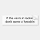 Pegatina para el parachoques con la declaración "si no viene el rockin del a de la furgoneta, el knockin del a"