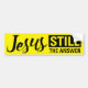 " Todavía Jesús diseño de la tipografía de la respuesta" en negro en fondo amarillo brillante.
