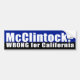 Tom McClintock se opone a responsabilidad en tortura y para la discriminación de género. Él se ha mantenido listo ocioso mientras que los americanos pierden sus hogares a la ejecución de una hipoteca. Cuando Tom McClintock no napping, él está persiguiendo las políticas incorrectas para California. ¡Es hora de votar a Tom McClintock fuera de congreso! (Pegatina para el parachoques Anti-McClintock)