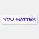Ningunos diseños o imágenes cutesy, apenas las dos palabras todos necesitan oír a veces: "USTED MATERIA". ¡Recuerde los conductores (y a los pasajeros! ¡Y peatones!) alrededor de usted que tienen un papel a jugar en este mundo!