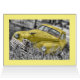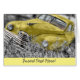 Fotografía de un viejo auto amarillo con campo blanco y negro. Etiquetas: amarillo, coche, automóvil, automóvil, "negro y blanco", color, fotografía, foto, antiguo, vintage, negro, blanco, "regalos para él", campo, viejo, artístico,