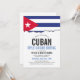 Una tarjeta de invitación blanca limpia con tema de bandera cubana para tu próximo evento temático cubano. Un excelente punto de partida para un evento gastronómico o una barbacoa especial de comida.