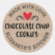 Un pegatina rústico personalizado "hecho con amor" sobre un fondo de color kraft. Para decorar tu regalo de galletas de chocolate. Hazlo tuyo añadiendo tu propio nombre. Un toque de acabado de bonito para su regalo de galletas de chocolate. Diseñado para ti por Blackberry Boulevard.
