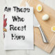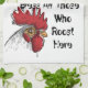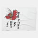 "Bendiciones a todos los que aquí descansan" es la leyenda de esta toalla de cocina con cabeza de pollo blanca. Personalizar este artículo o compra como se muestra. Imagen de archivo freepik.com
