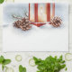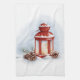 Un ilustracion acuático festivo con una linterna roja y una vela brillante, rodeado de ramas de pino, pinecones y nieve, ideal para las vacaciones, las invitaciones con temática invernal, los posters y los diseños estacionales.