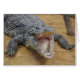 Fotografía de un cocodrilo en la arena con las mandíbulas abiertas.