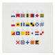 Indicadores de código de señal para el transporte marítimo internacional. Estas coloridas banderas náuticas incluyen tanto la letra como la palabra. ¡Adecuado para encuadrar!