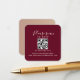 Tarjeta RSVP de boda minimalista, elegante, moderna y burdeos con código QR.