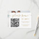 Una tarjeta de confirmación de asistencia elegante con un código QR personalizado y los detalles del sitio web de la boda en tipografía chic y una foto especial en el reverso. Diseñado por Thisisnotme©