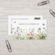Tarjeta de presentación para prados de flores silvestres acuarelas blancas y limpias. La fachada tiene el diseño de un prado de flores silvestres y mariposas con el nombre de los propietarios. El reverso tiene todo lo esencial de una tarjeta de visita; nombre, nombre/nombre de la empresa, dirección, teléfono de trabajo, correo electrónico, teléfono móvil y dirección web. El código QR de la compañía está en la esquina derecha para acceder fácilmente a tu dirección web seguido de un diseño dulce de un pequeño ramo de flores silvestres y una libélula. Este diseño de flores silvestres acuáticas viene en diferentes productos, perfecto para usted que necesita otros suministros y quiere un diseño cohesivo en sus productos promocionales. Mezclar y hacer juego. Es impresionante y da un toque femenino a tu negocio.