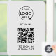 Una simple plantilla de señal de vinilo personalizable para ventana en un estilo minimalista moderno que se puede actualizar fácilmente con el logotipo de su empresa, código QR y texto personalizado.