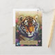 Guau, familia y amigos con una tarjeta postal moderna y creativa para la invitación al tigre. La parte delantera de la postal tiene un diseño de flores de tigre con "Estás invitado". Los detalles sobre el evento están en la parte posterior junto con un código QR. El código QR se puede usar para su RSVP, sitio web (entre otros). También puede utilizar la plantilla para agregar su nombre y dirección de devolución, así como el nombre del destinatario y la dirección de correo para que se imprima directamente en la parte posterior de la tarjeta postal. Colores de tierra. Diseño de tigre personalizado. Utilice la plantilla para personalizar.
