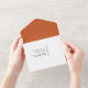 Estas son útiles invitaciones de boda todo en uno con postales RSVP perforadas fáciles de romper. Sólo tienes que añadir tu foto y cambiar el texto para adaptarlo a tus necesidades. Color de terracota mostrado. Bonito aspecto moderno. También se proporciona un código QR en el que se puede incluir el sitio web de su boda, el registro de bodas y más. Utilice la parte de dirección de devolución de la plantilla si desea que la dirección se imprima directamente en la tarjeta postal RSVP o puede optar por etiquetas de dirección de devolución. Utilice la plantilla para personalizar.