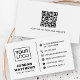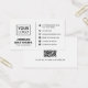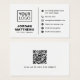 Tarjeta de presentación moderna y profesional con campos de plantilla para nombre, nombre de la empresa/título, logotipo (foto u otro gráfico), código QR e información de contacto, incluidos iconos de redes sociales, en color blanco o personalizado. Cambie el color de fondo, mueva y redimensione los elementos con la herramienta de personalización.