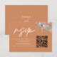 Una tarjeta de respuesta de boda marrón terrosa moderna, con código QR, flores de acuarela y letra de script. Personalice con los detalles de su próxima boda y sitio web.