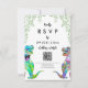 Tarjeta de respuesta de sitio web de código QR de RSVP de boda temática de dinosaurios coloridos modernos con novia y novio divertidos de dinosaurios y follaje de eucalipto acuarela para traer alegría prehistórica de la jungla jurásica a tu día de boda. Tipografía caprichosa moderna con plantillas fáciles de personalizar para que puedas agregar el código QR del sitio web de la boda y la dirección web del navegador e instrucciones útiles para los invitados. Novia y novio únicos y divertidos Tyrannosaurus Rex psicodélicos con arte original de acuarela de vegetación botánica de la artista Catherine Sweetman. Ideal para la recepción del día de la boda o la cena de ensayo. La suite de boda a juego incluye todo lo que necesitarás en tu divertido viaje de boda.