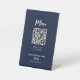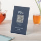 Muestre su menú sin contacto con esta señal personalizada de mesa para sus clientes. El diseño de esta señal cuenta con una plantilla de código QR e íconos de redes sociales sobre un fondo azul marino. Puede personalizar el texto y agregar su código QR. Esta señal será un buen complemento para sus lugares de negocios como cafeterías o restaurantes.