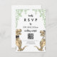Boda moderna con temática Dinosauria RSVP tarjeta de respuesta web QR Code con divertida novia de dinosaurio y follaje eucalipto de novio y acuarela para traer alegría Jurásica prehistórica a su día de bodas. Moderna y caprichosa tipografía caligrafía con plantillas fáciles de personalizar para que pueda añadir el código QR del sitio web boda y la dirección web del navegador y las útiles instrucciones de los invitados. Fun T-Rex bride and groom con acuarela vegetación botánica obra original de la artista Catherine Sweetman Ideal para el día de la boda o para la cena de ensayo. La suite boda incluye todo lo que necesita en su viaje boda divertido