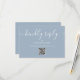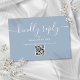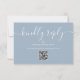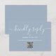 Una simple y elegante tarjeta de respuesta con código QR de firma con escritura amable responder por favor azul polvoriento. Diseñada por Thisisnotme©