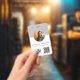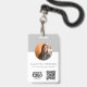 Una moderna insignia minimalista personalizada de negocios con el logotipo de la empresa, la foto de los empleados, el texto y el código QR. Personalice con su logotipo, código QR y detalles para crear su propia insignia de negocio única. Personalizar aún más con un fondo de color personalizado o una fuente.