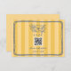 Boda RSVP con marco azul y ilustracion floral sobre fondo de banda amarilla con texto rojo en la parte delantera y trasera. Personalice el texto y el código QR.