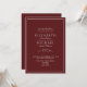 Una clásica y elegante invitación a la boda borgoña, con caligrafía de escritura. Perfecto para la novia moderna que tiene un romance formal. Ahorre el coste en la instalación estacionaria con nuestro código QR incluido en la parte posterior de la invitación para obtener detalles de RSVP y Boda. Vea la colección completa aquí: https://www.zazzle.com/collections/elegant_burgundy_classic_script_wedding-119551906868087326 Póngase en contacto con el diseñador para obtener productos coincidentes. Muchas gracias por apoyar a nuestra pequeña empresa, ¡realmente lo apreciamos! Estamos tan contentos de que te guste tanto este diseño como nosotros, y nos encantaría invitarte a formar parte de nuestro nuevo grupo privado de Facebook Consejos de planificación de Bodas para novias ocupadas. Únete a recibir las últimas ventas, nuevas versiones y más! https://www.facebook.com/groups/622298402544171 Copyright Anastasia Surridge para Elegant Invitaciones, todos los derechos reservados.