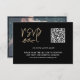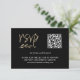 Cree una declaración elegante con esta tarjeta RSVP de boda en negro y oro de moda. Con una caligrafía elegante, un sencillo acento botánico dorado y un cómodo código QR, este diseño combina sofisticación y funcionalidad moderna. Perfecto para un boda contemporáneo, ofrece a sus huéspedes una manera refinada y sin esfuerzo de llegar a RSVP.