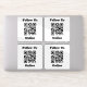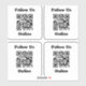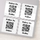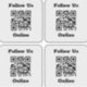 Cuatro pegatinas cada uno con un código QR y con el mensaje "Síguenos en línea". Reemplace la URL del código QR por su propio enlace de sitio web.