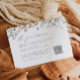 Un boda de flores silvestres detalla la tarjeta de gabinete con un código QR que incluye gráficos florales de bonito con una paleta de colores azul, rosa, lila, amarillo y verde suave y un tipo de letra moderno. Perfecto para un boda de primavera o verano y se puede emparejar con cualquier cosa de la colección ELODIE para un aspecto cohesivo. Este diseño ha sido presentado en el Boda Sparrow.