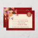 Tonos rojos, naranjas y neutros adornan flores de piedra sobre un fondo rojo brillante y un símbolo de doble felicidad dorado. Tarjeta de Boda china RSVP con un escandaloso código qr y nombres de novios y novios.