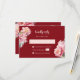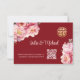 Flores de peonía acuarela sobre un fondo rojo marrón. Tarjeta de Boda china RSVP con un código qr escaneado para su sitio web boda.