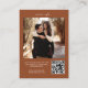 Esta tarjeta de gabinete ultramoderna tiene varias características elegantes, incluyendo dos fotos, texto de guión y un código QR. Es un complemento perfecto para cualquier suite de invitados a la boda.
