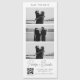 Esta minimalista tarjeta Save the Date presenta un diseño vertical elegante con tres imágenes de estilo cabina de fotos, una tipografía manuscrita elegante para los nombres de la pareja y fuentes limpias para los detalles del evento. También puede agregar su propio código QR aquí. Perfecto para las parejas que buscan una invitación atemporal y moderna, el hotel ofrece un ambiente romántico y sofisticado para su día especial.
