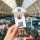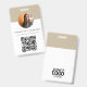 Una moderna insignia minimalista personalizada de negocios con el logotipo de la empresa, la foto de los empleados, el texto y el código QR. Personalice con su logotipo, código QR y detalles para crear su propia insignia de negocio única. Personalizar aún más con un fondo de color personalizado o una fuente.